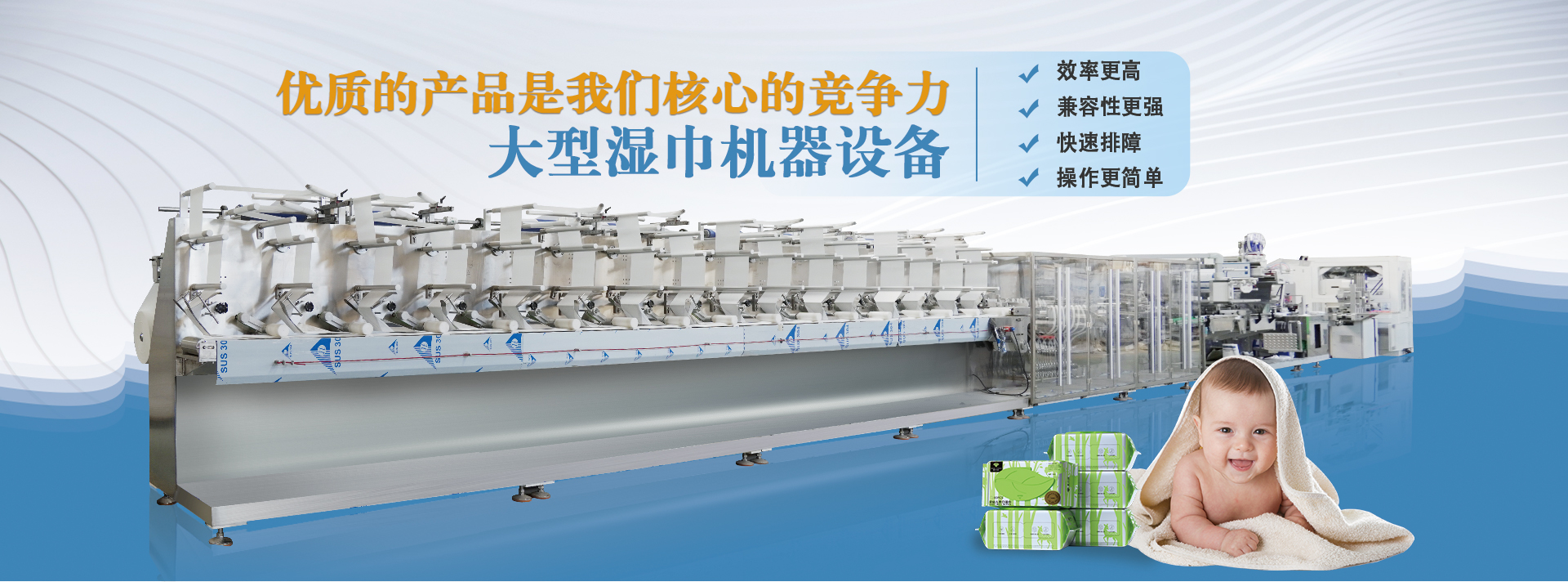 公司產品有單片四邊封濕巾機、1-10片裝背封濕巾機、5-30片裝背封濕巾機、6道全自動濕巾機、6道半自動濕巾機、12道全自動濕巾機、16道全自動濕巾機、20道全自動濕巾機、52道全自動濕巾機等。